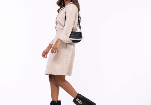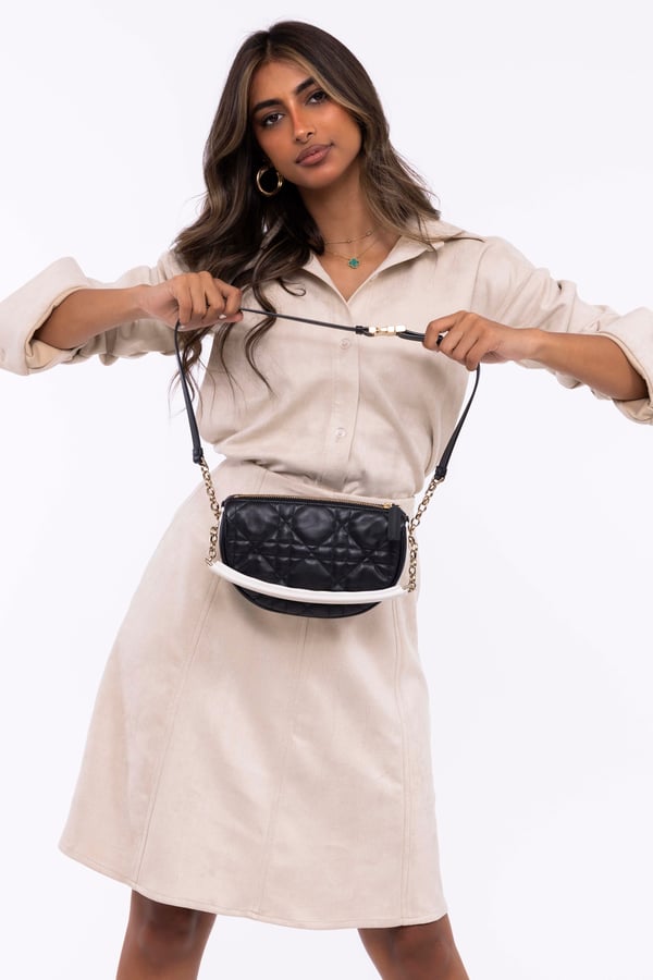 Beige suede skirt set