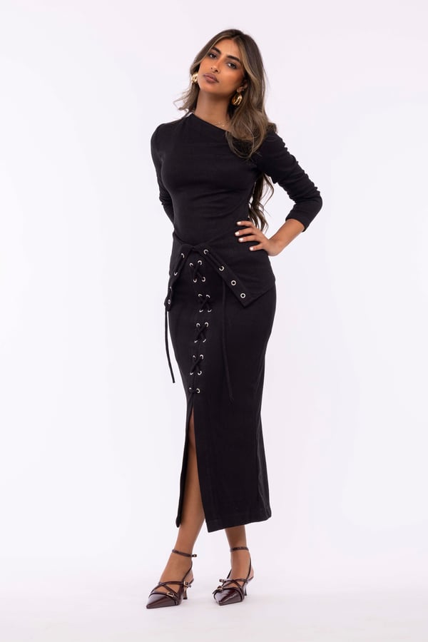 Black knit midi skirt